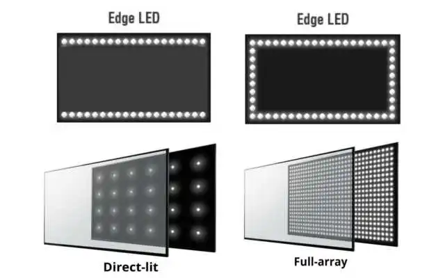 Existem dois tipos principais de configuração de iluminação de fundo em televisores de LED e LCD: