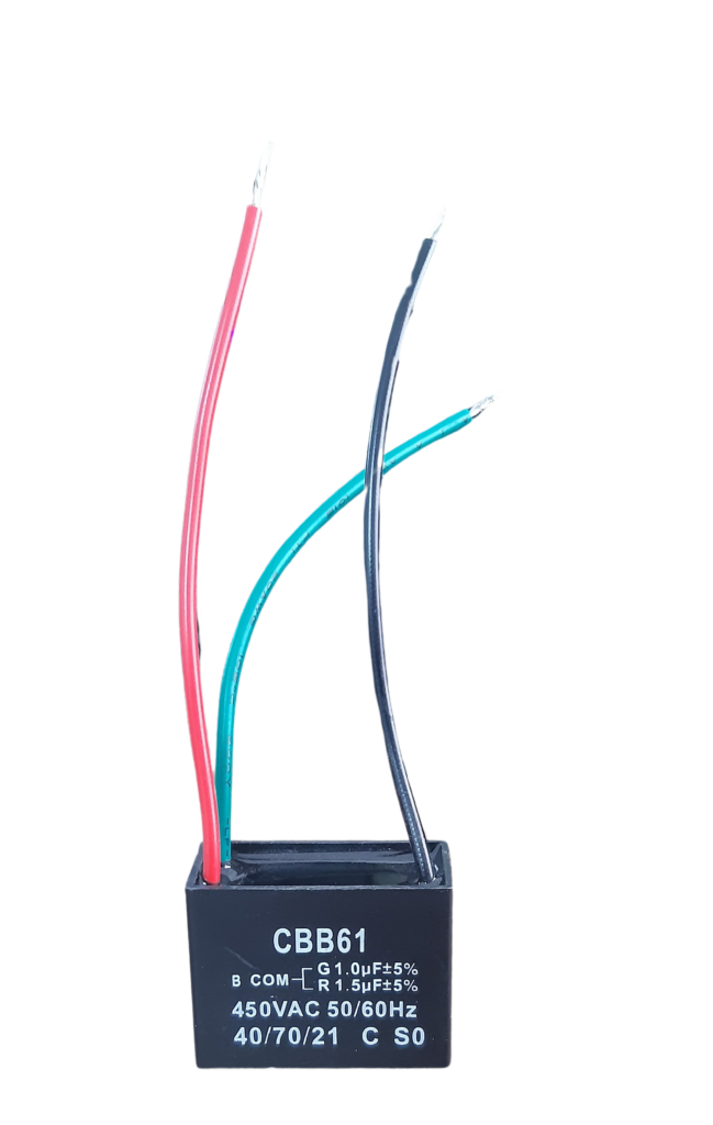 Abaixo de um exemplo de Capacitor para ventilador de teto.
